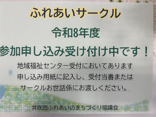 令和8年度ふれあいサークルの申込開始しました。