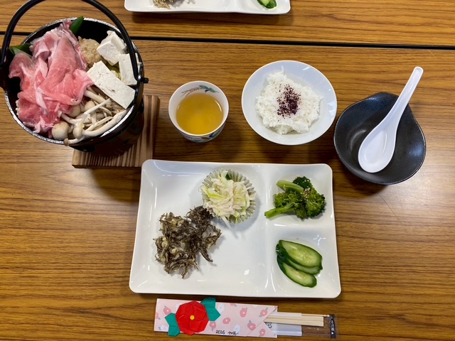12月9日(火)すき焼きとたくさんのお野菜で栄養満点のメニューを頂いた後、ゴールドクレストにクリスマスのお飾りをつけてお持ち帰りしました。